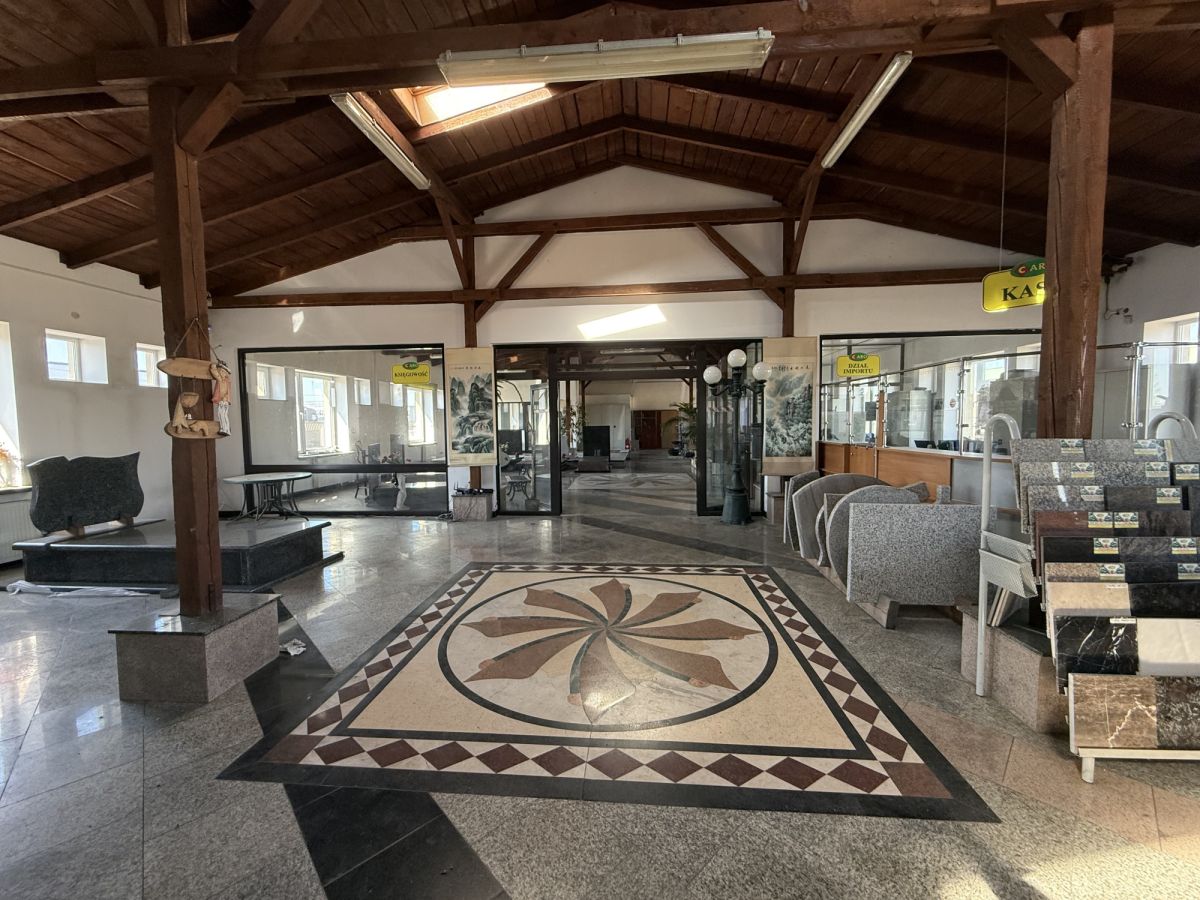 - Mury jednokondygnacyjnego budynku o powierzchni użytkowej 626,20 m² , bez dachu z nową stolarką okienną, do gruntownego remontu,