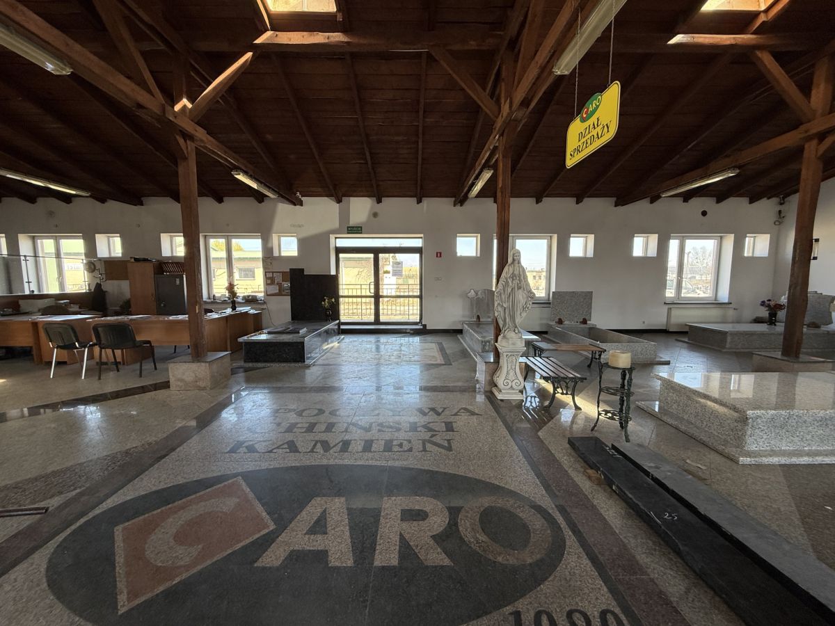 - Jednokondygnacyjny budynek o powierzchni użytkowej 598,47 m², w dobrym stanie technicznym z instalacją elektryczną i odgromieniem. Wyposażony w grzejniki elektryczne oraz dodatkową instalację alarmową z kamerami, a przy budynku usytuowana jest betonowa rampa.