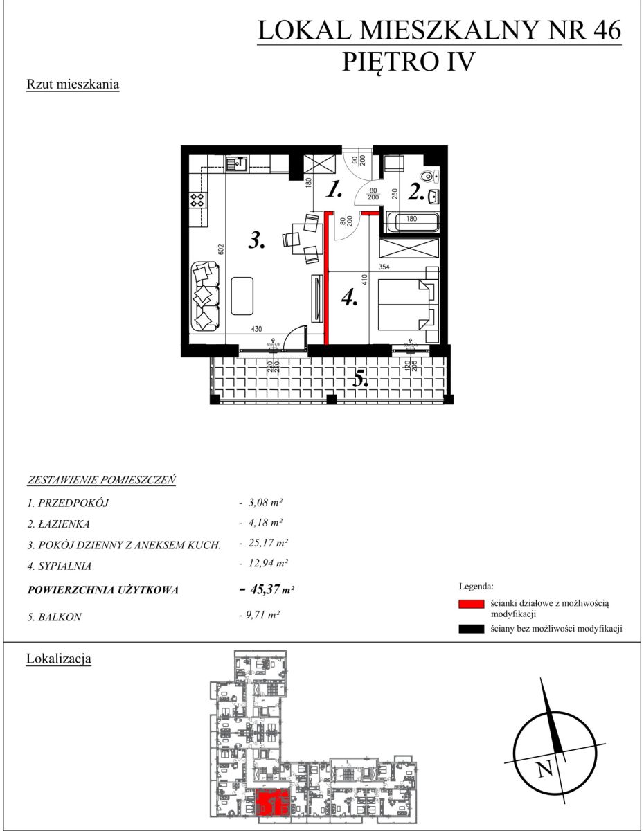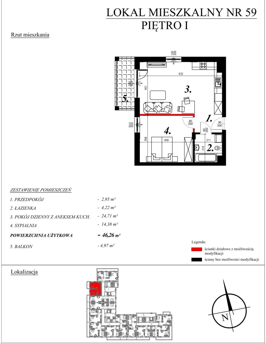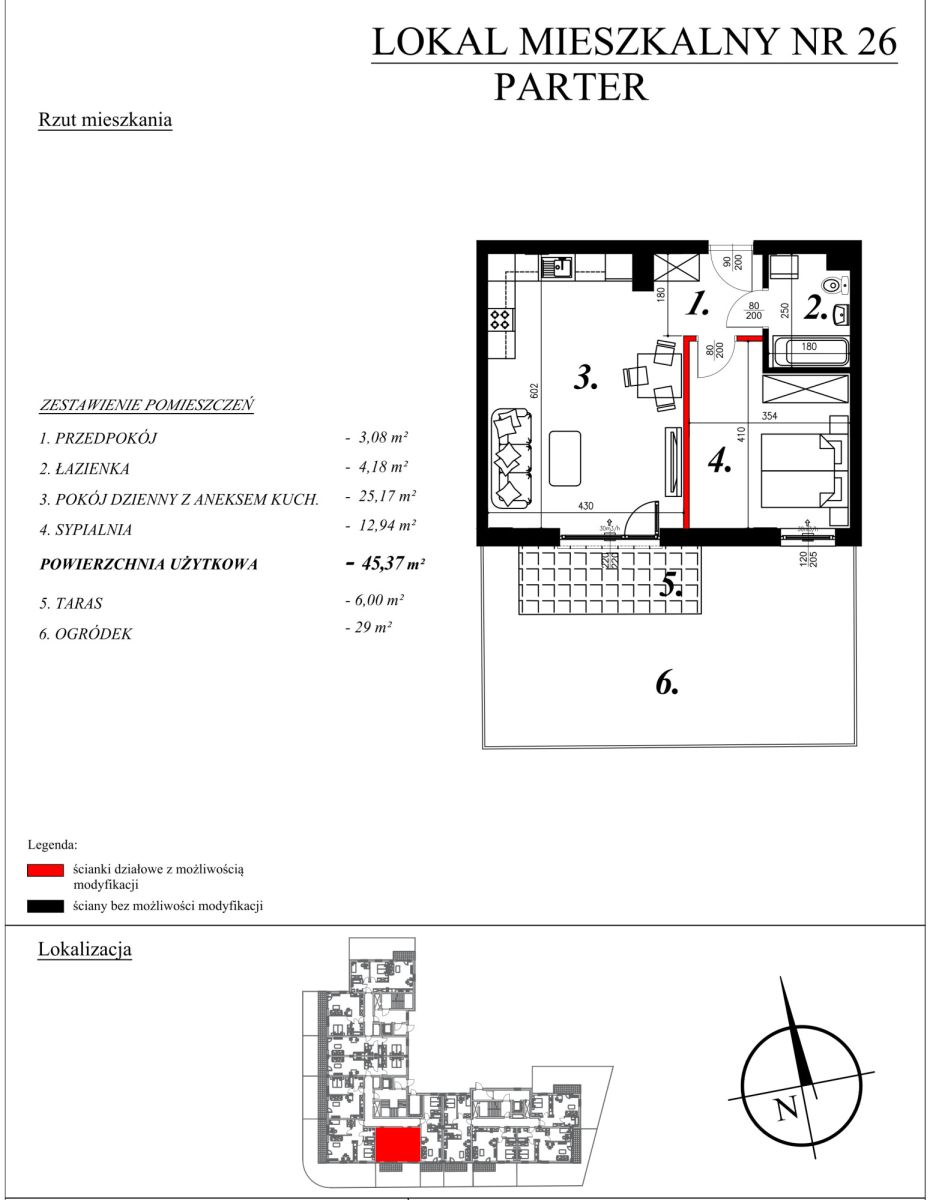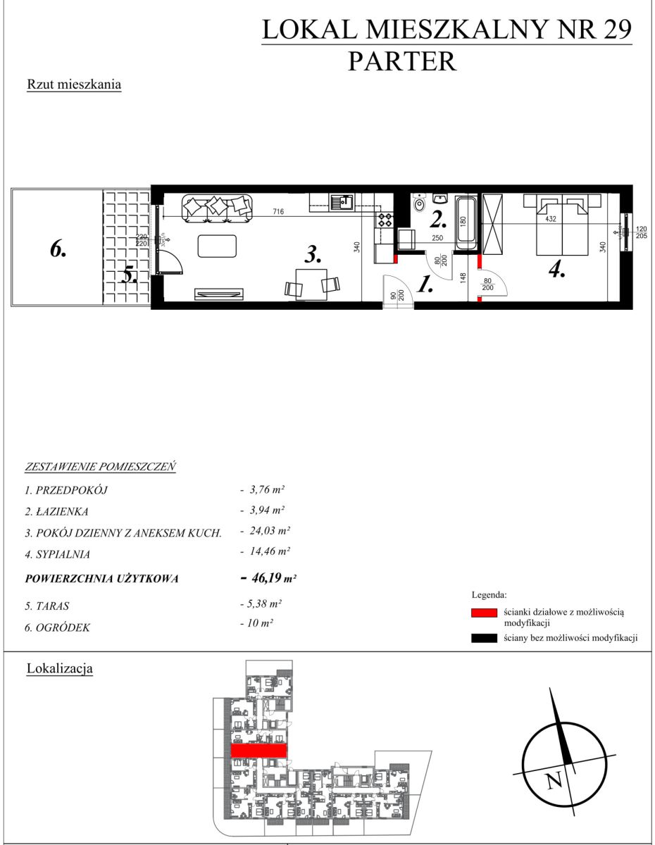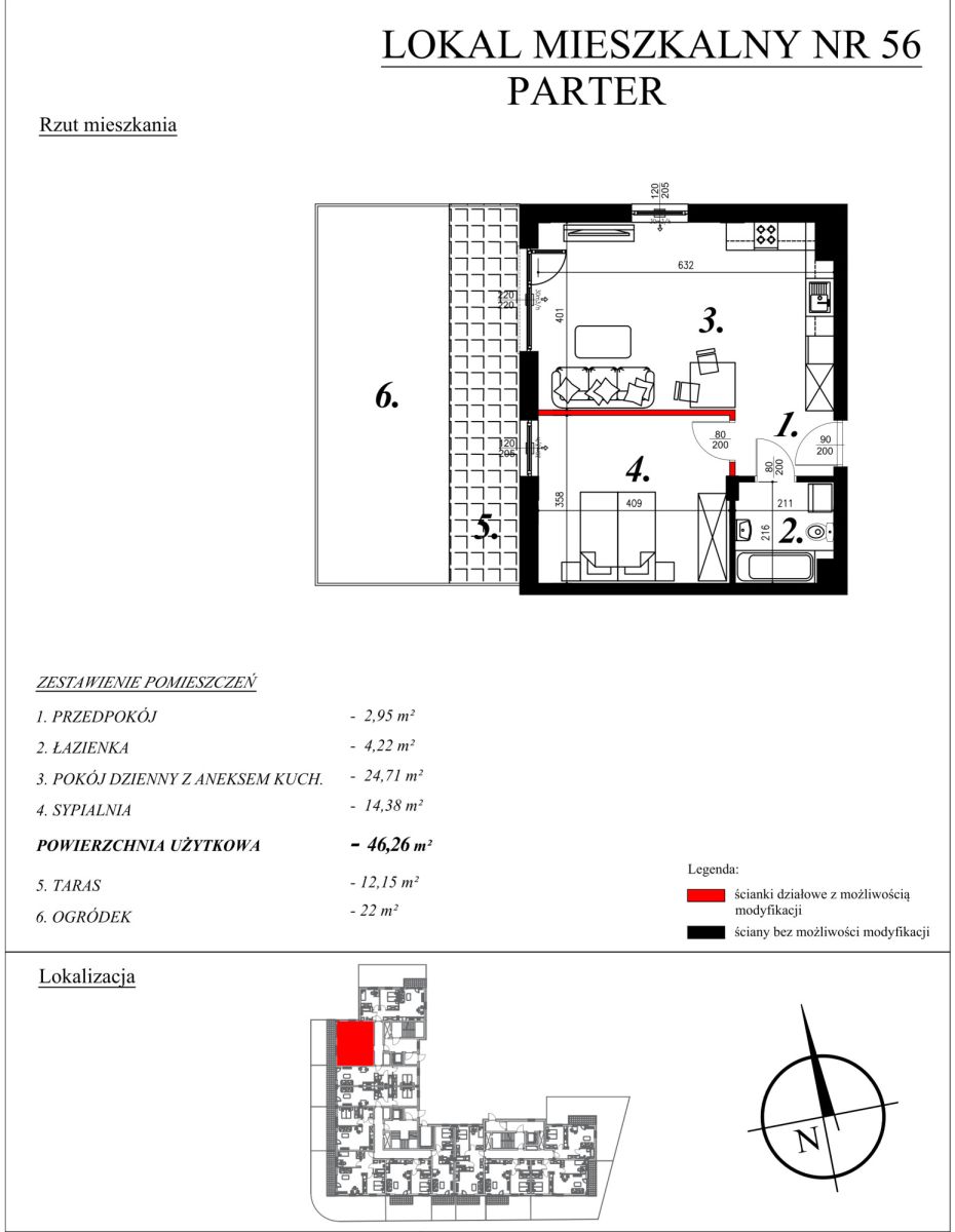 O mieszkaniach:W ofercie posiadamy nowe mieszkania o powierzchni od 40,27m² do 46,26m², w skład których wchodzą: