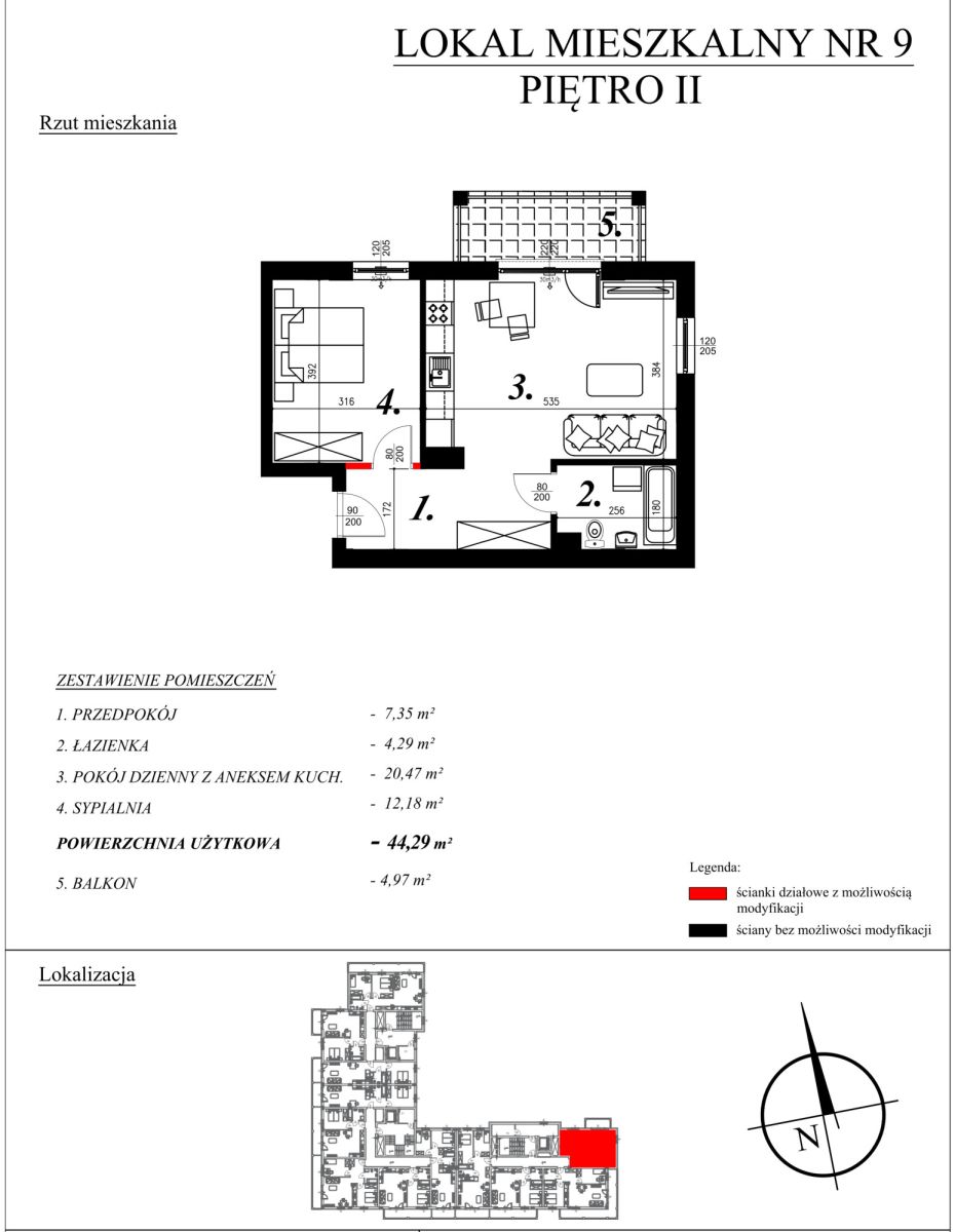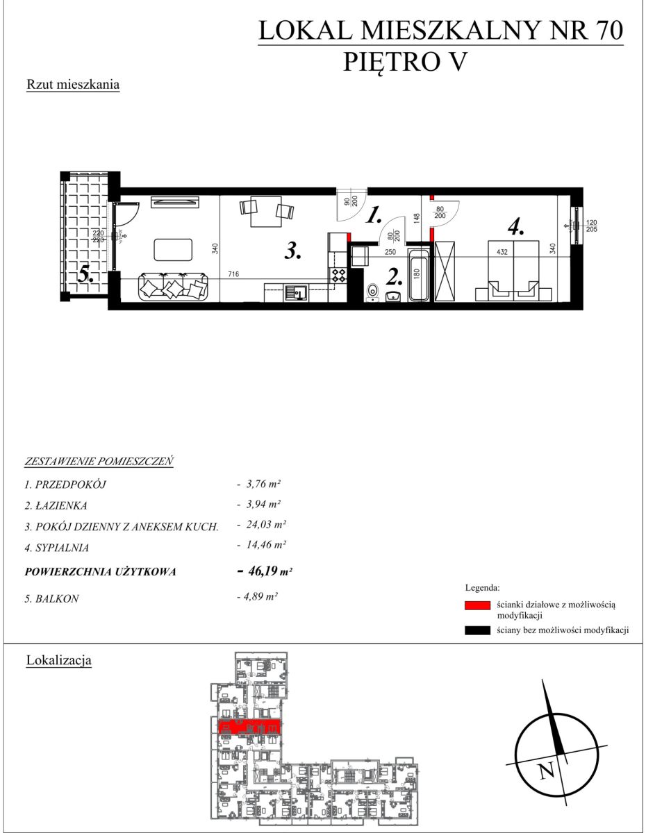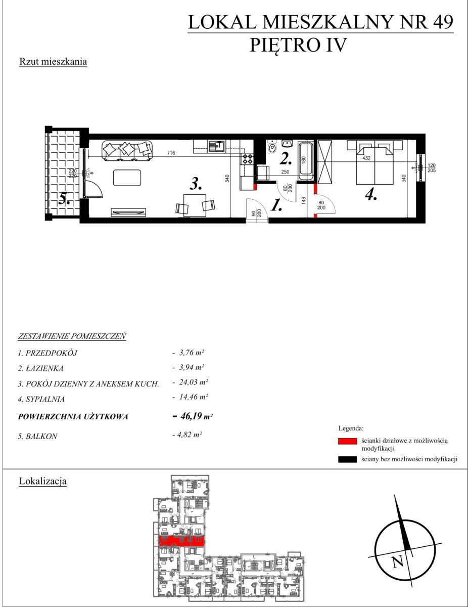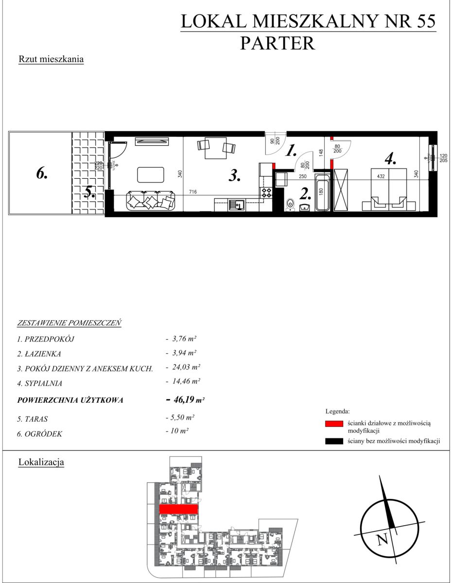 O mieszkaniach:W ofercie posiadamy nowe mieszkania o powierzchni od 40,27m² do 46,26m², w skład których wchodzą: